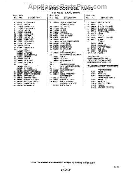 Parts for Whirlpool CXA1750W0: 05 - Section Parts