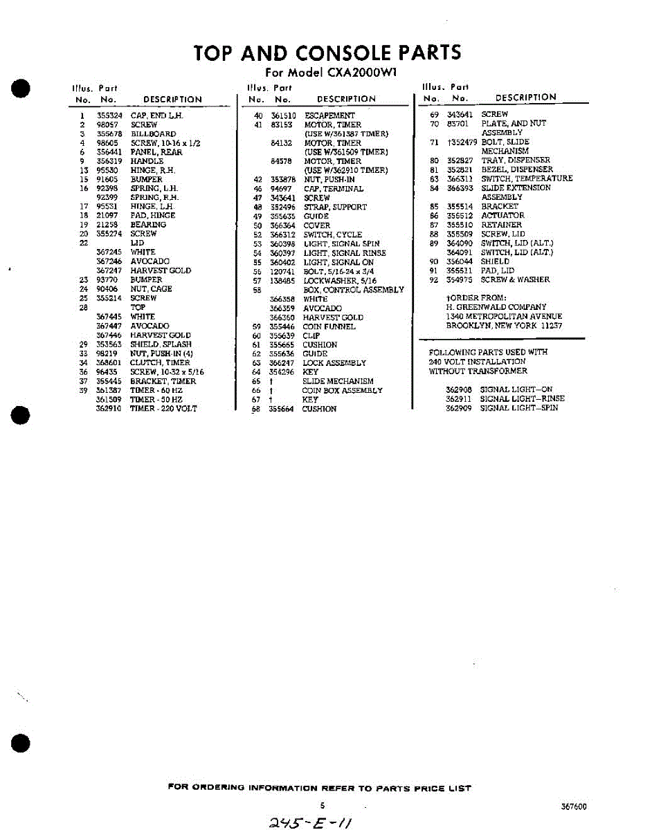 Parts for Whirlpool CXA2000W1: 05 - Section Parts