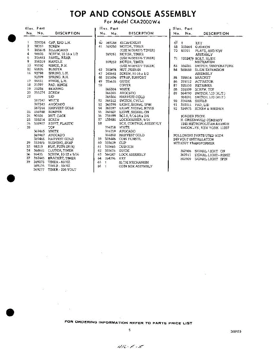 Parts for Whirlpool CXA2000W4: 05 - Section Parts