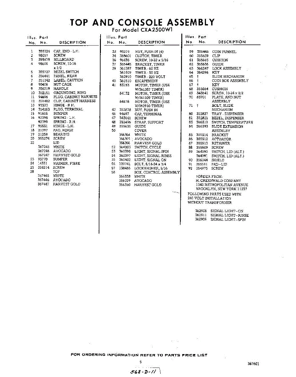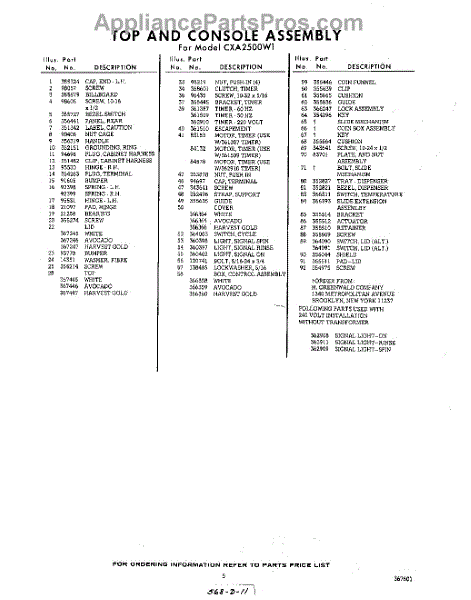 Parts for Whirlpool CXA2500W1: 05 - Section Parts