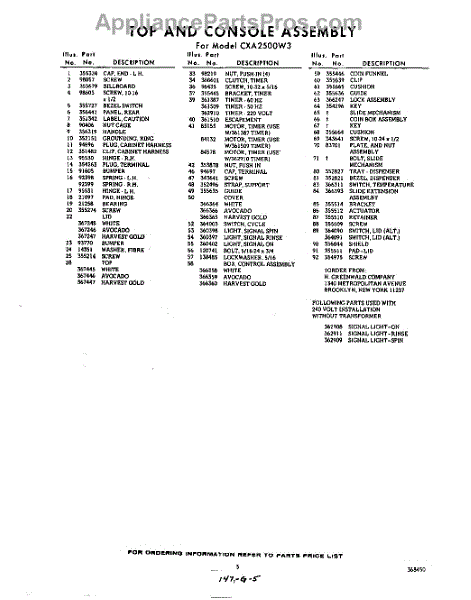 Parts for Whirlpool CXA2500W3: 05 - Section Parts