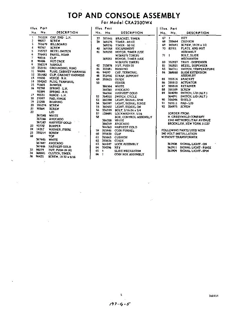 Parts for Whirlpool CXA2500W4: 05 - Section Parts