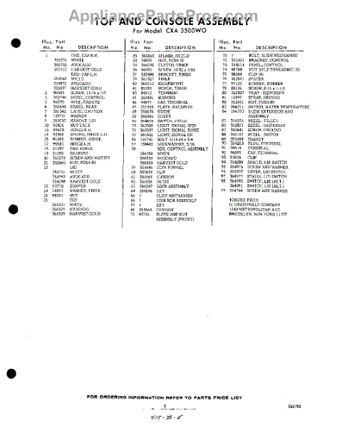 Parts for Whirlpool CXA3500W0: 05 - Section Parts