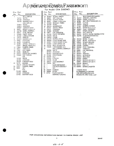 Parts for Whirlpool CXA3500W3: 05 - Section Parts
