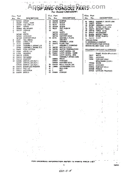Parts for Whirlpool CXB1400W1: 05 - Section Parts