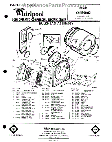 Parts for Whirlpool CXE1700W2: 01 - Section Parts