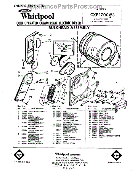 Parts for Whirlpool CXE1700W3: 01 - Section Parts