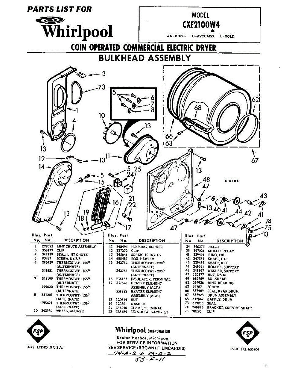Parts for Whirlpool CXE2100W4: 01 - Section Parts