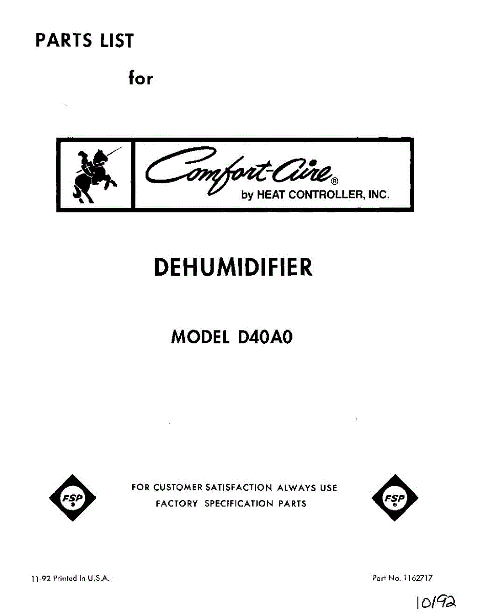 Parts for Whirlpool D40A0: 01 - Section Parts