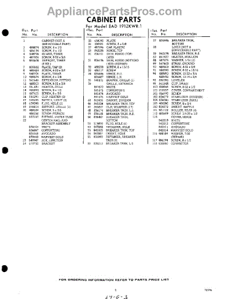 Parts for EAD191ZKWR1