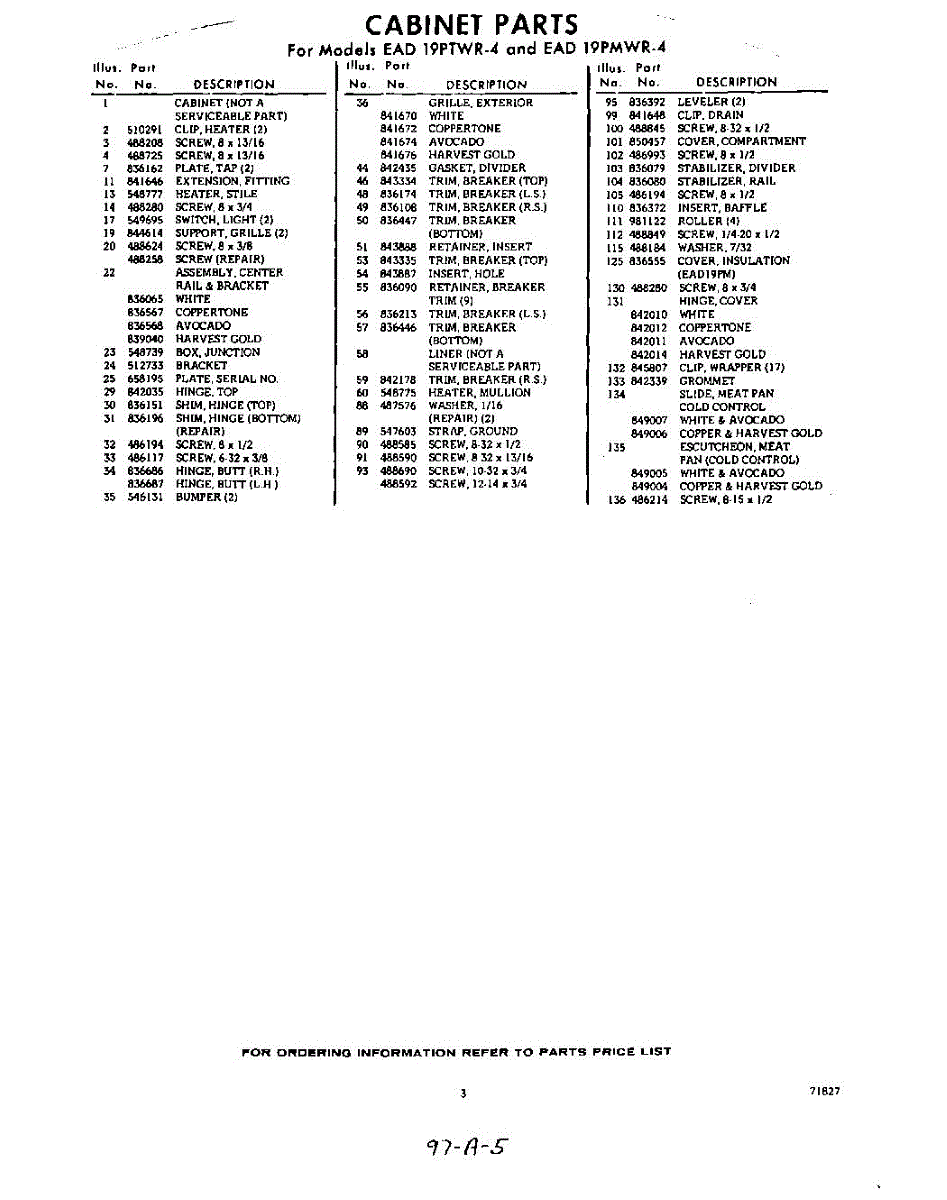 Parts for Whirlpool EAD19PTWR4: 03 - Section Parts