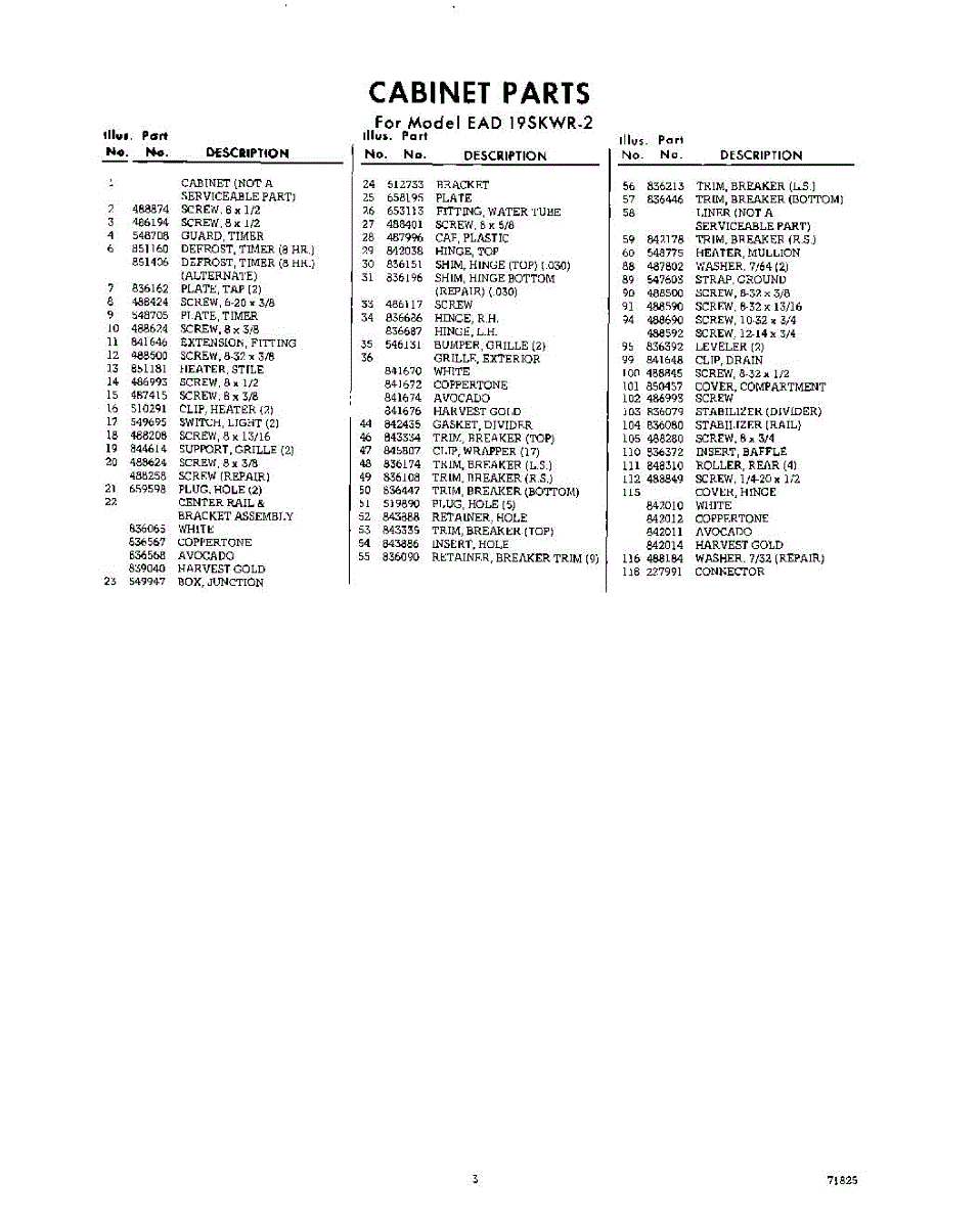Parts for Whirlpool EAD19SKWR2: 03 - Section Parts