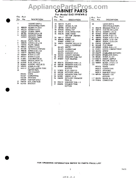 Parts for Whirlpool EAD19VKWR0: 03 - Section Parts