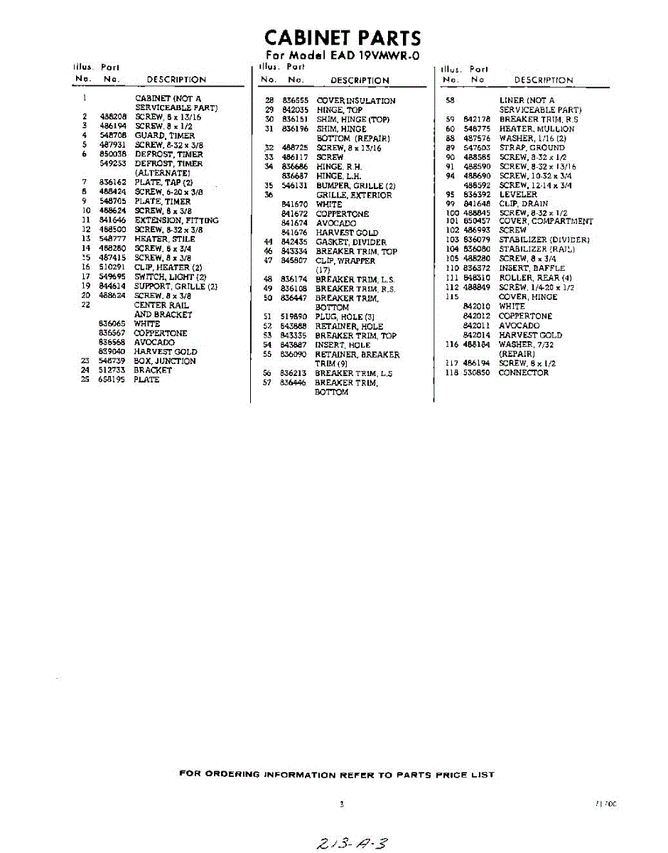 Parts for Whirlpool EAD19VMWR0: 03 - Section Parts
