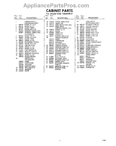 Parts for Whirlpool EAD19XMWR0: 03 - Section Parts