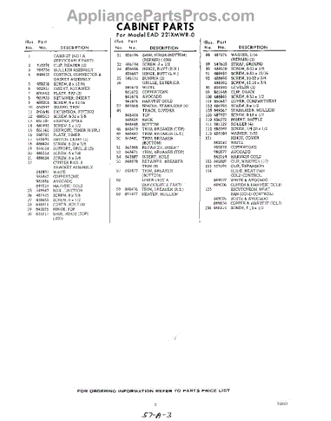 Parts for Whirlpool EAD221XMWR0: 03 - Section Parts