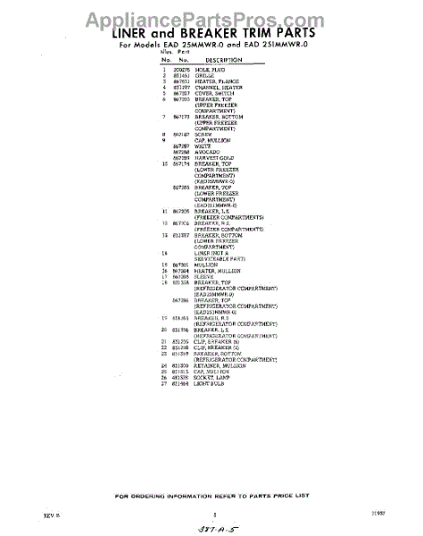 Parts for Whirlpool EAD25MMWR0: 05 - Section Parts