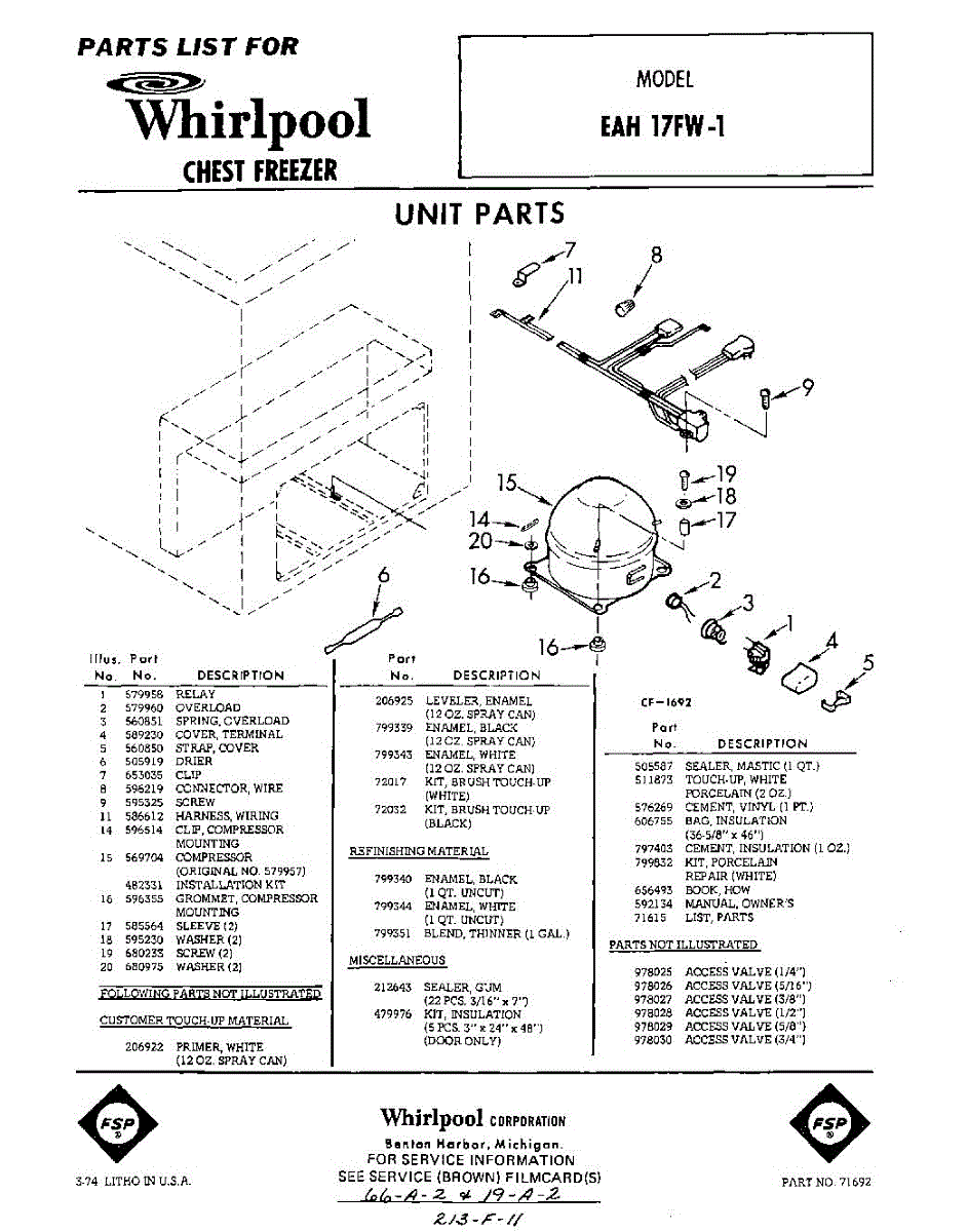 Parts for Whirlpool EAH17FW1: 01 - Section Parts