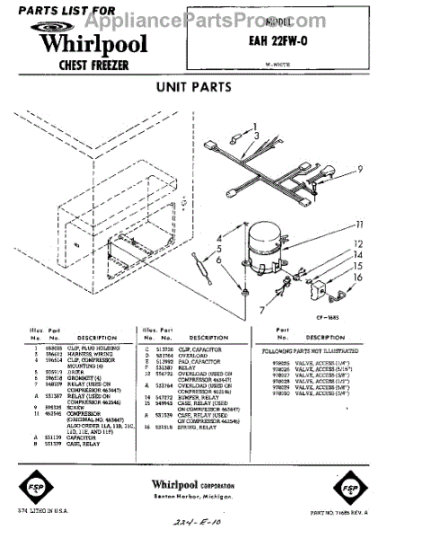 Parts for Whirlpool EAH22FW0: 01 - Section Parts