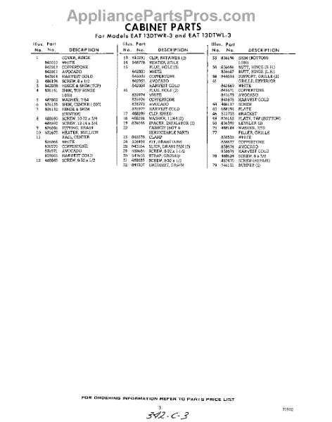 Parts for Whirlpool EAT13DTWR3: 03 - Section Parts