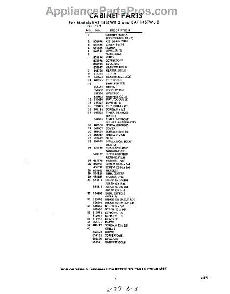 Parts for Whirlpool EAT14STWR0: 03 - Section Parts