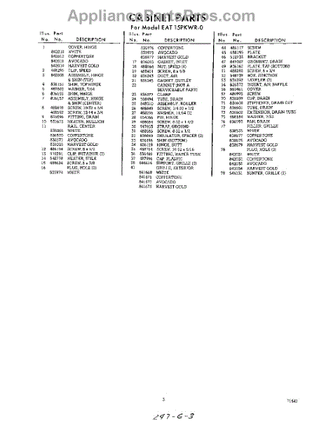 Parts for Whirlpool EAT15PKWR0: 03 - Section Parts