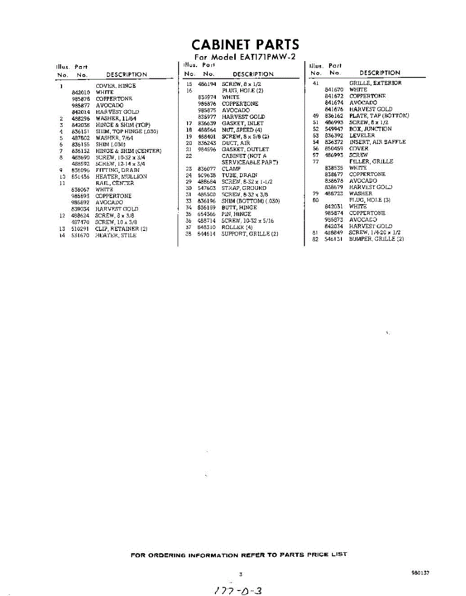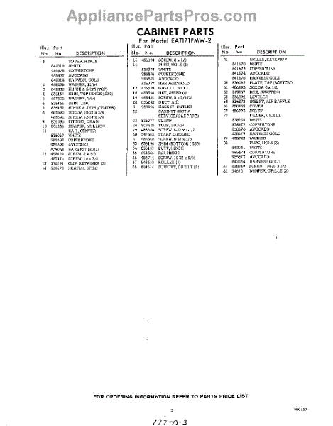 Parts for Whirlpool EAT171PMW2: 03 - Section Parts