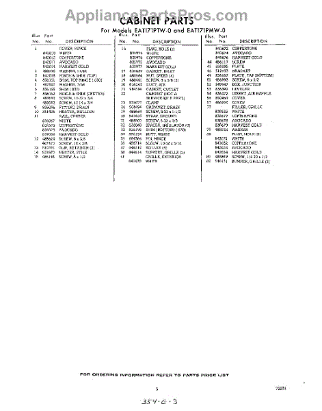 Parts for Whirlpool EAT171PTW0: 03 - Section Parts
