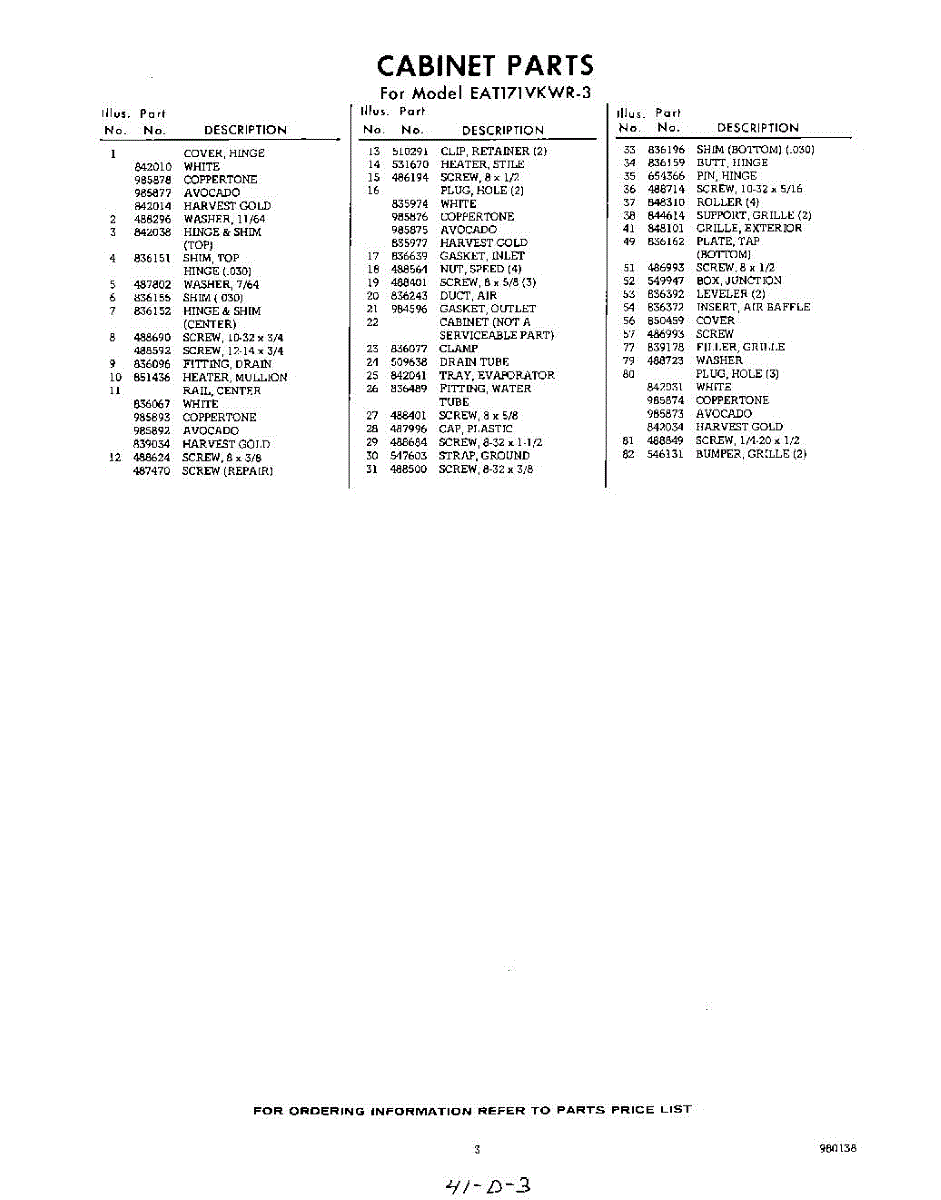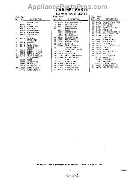 Parts for Whirlpool EAT171VKWR3: 03 - Section Parts
