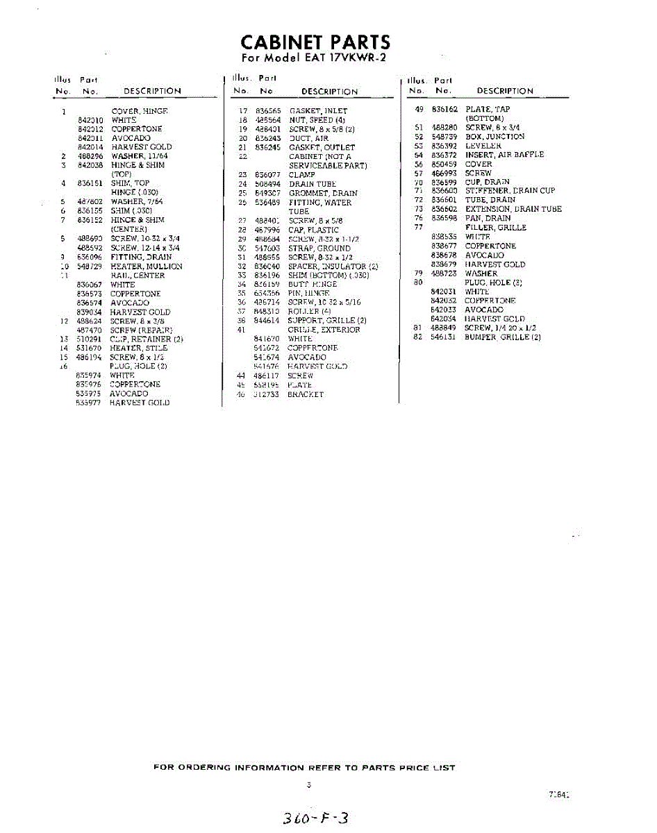 Parts for Whirlpool EAT17VKWR2: 03 - Section Parts