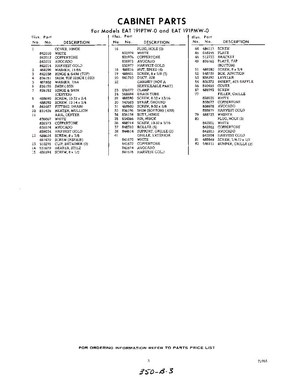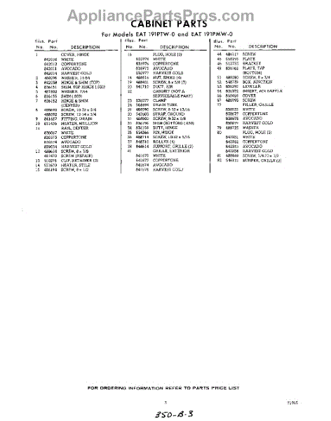 Parts for Whirlpool EAT191PMW0: 03 - Section Parts
