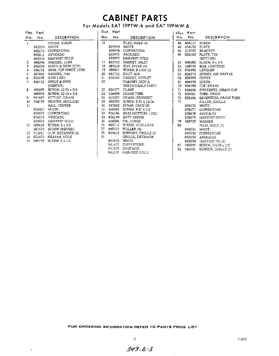 Parts for Whirlpool EAT19PMW6: 03 - Section Parts