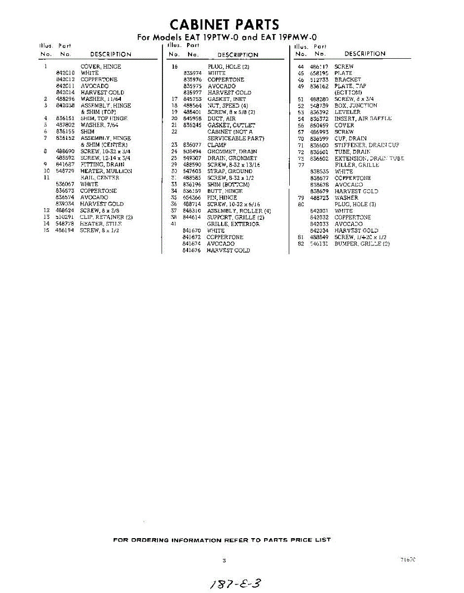 Parts for Whirlpool EAT19PTW0: 03 - Section Parts