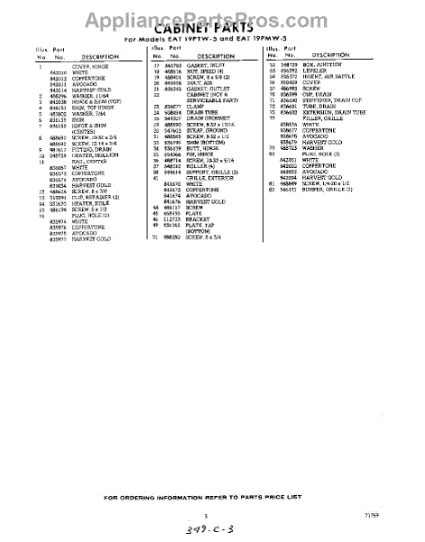 Parts for Whirlpool EAT19PTW5: 03 - Section Parts
