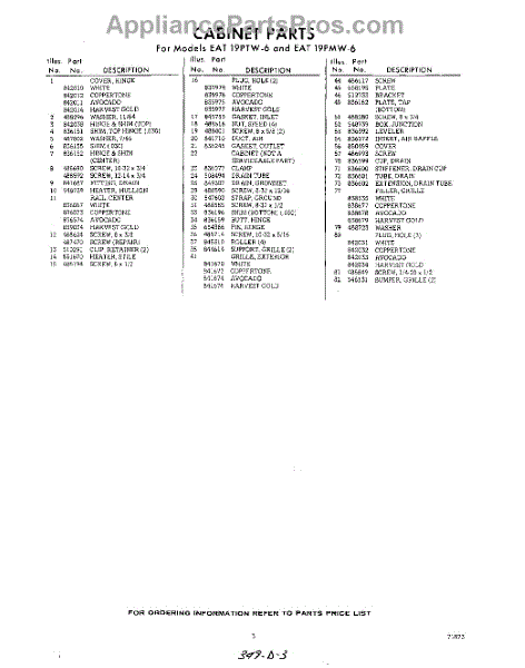 Parts for Whirlpool EAT19PTWR6: 03 - Section Parts