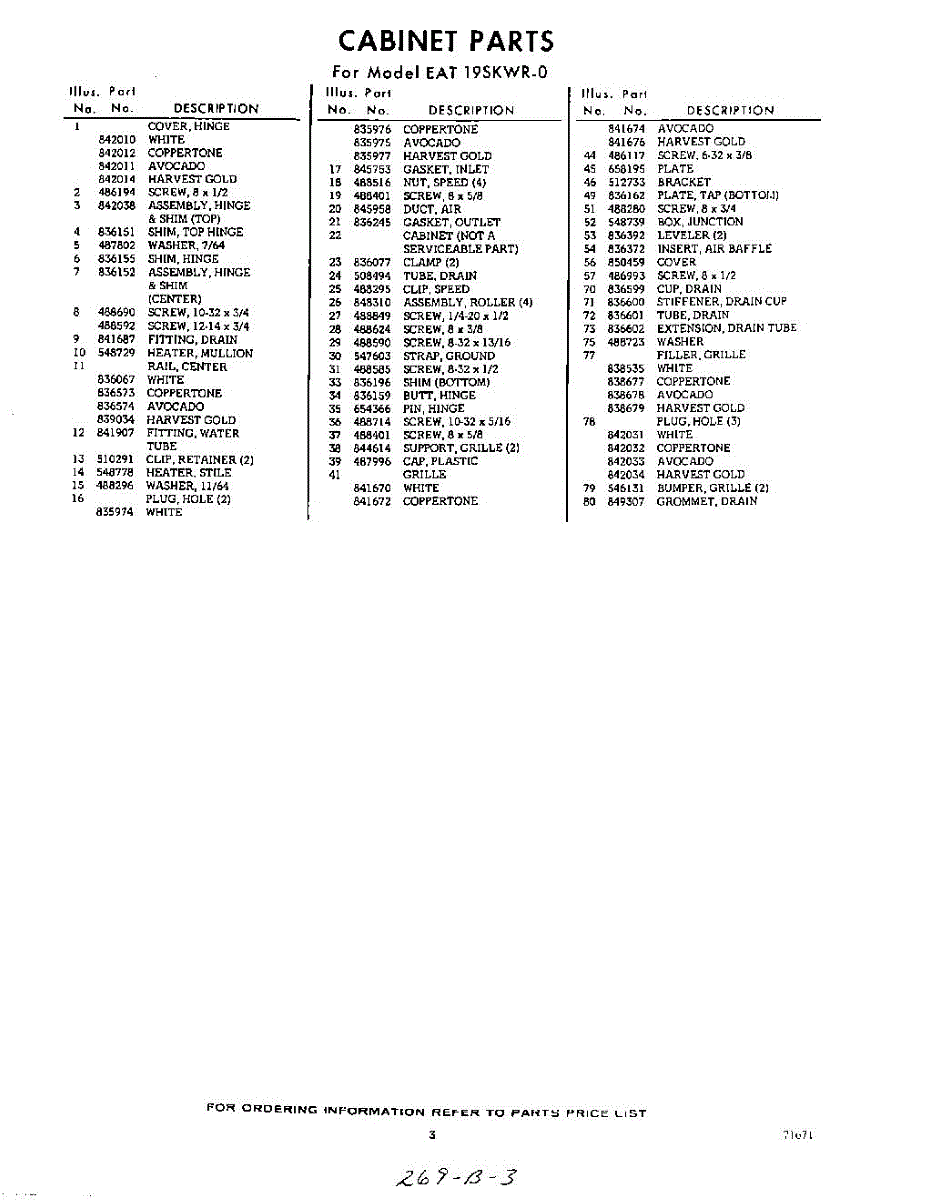 Parts for Whirlpool EAT19SKWR0: 03 - Section Parts