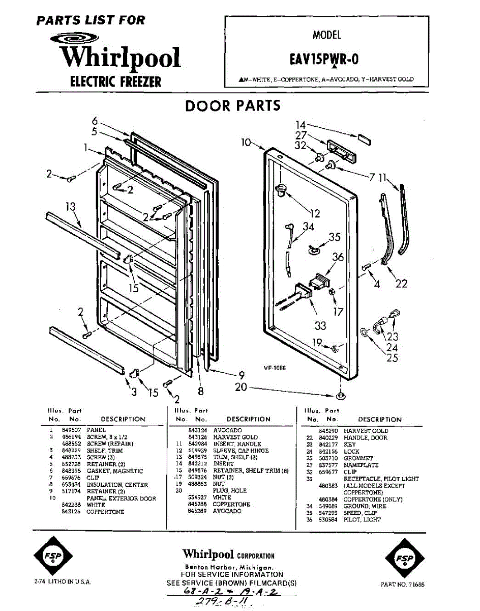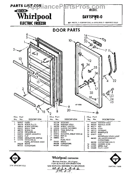 Parts for Whirlpool EAV15PWR0: 01 - Section Parts