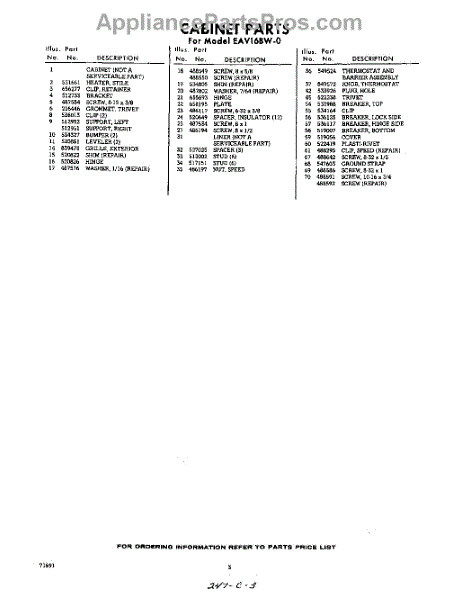 Parts for EAV16BW0