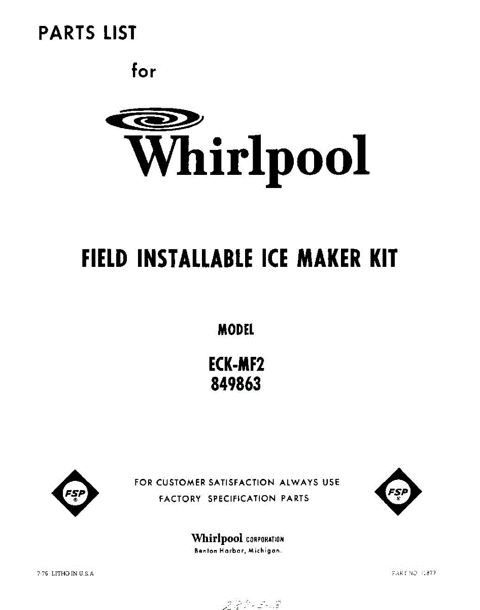 Parts for Whirlpool ECKMF2: 01 - Section Parts