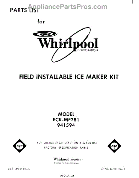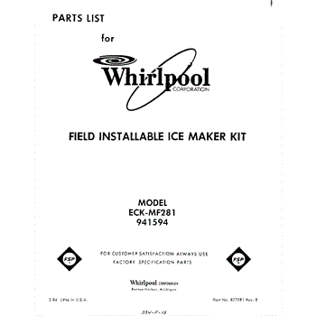 Parts for Whirlpool ECKMF281: 01 - Section Parts