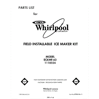 Parts for Whirlpool ECKMF63: 01 - Section Parts