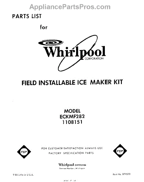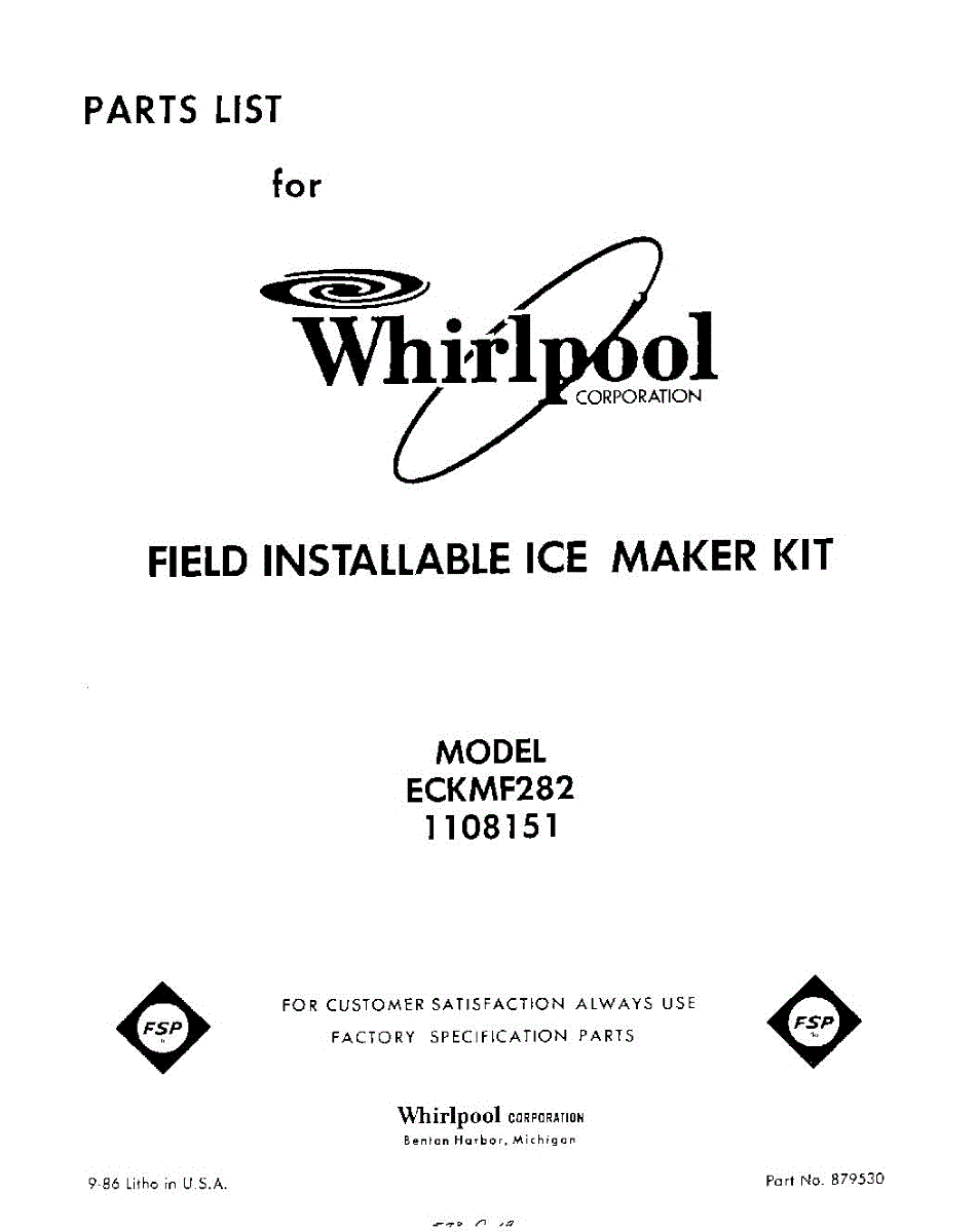 Parts for Whirlpool ECKMF82: 01 - Section Parts
