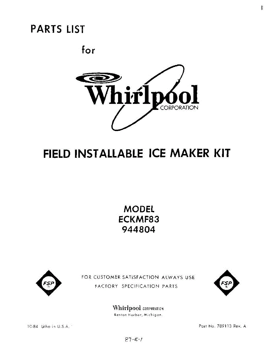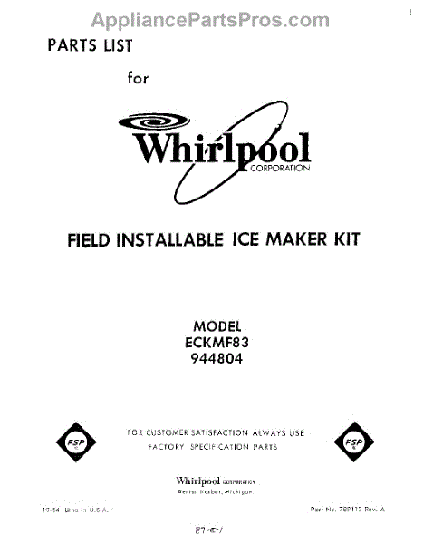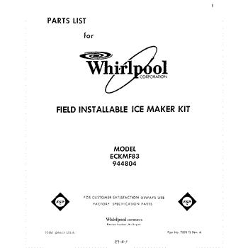 Parts for Whirlpool ECKMF83: 01 - Section Parts