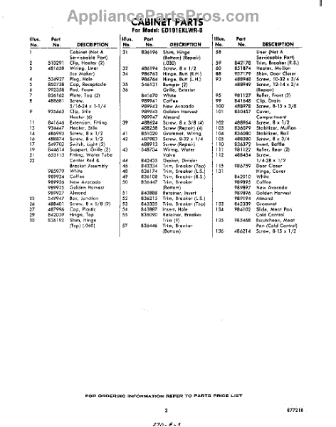 Parts for Whirlpool ED191EKLWR0: 03 - Section Parts