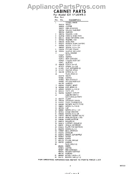 Parts for Whirlpool EDT171ZKWR0: 03 - Section Parts