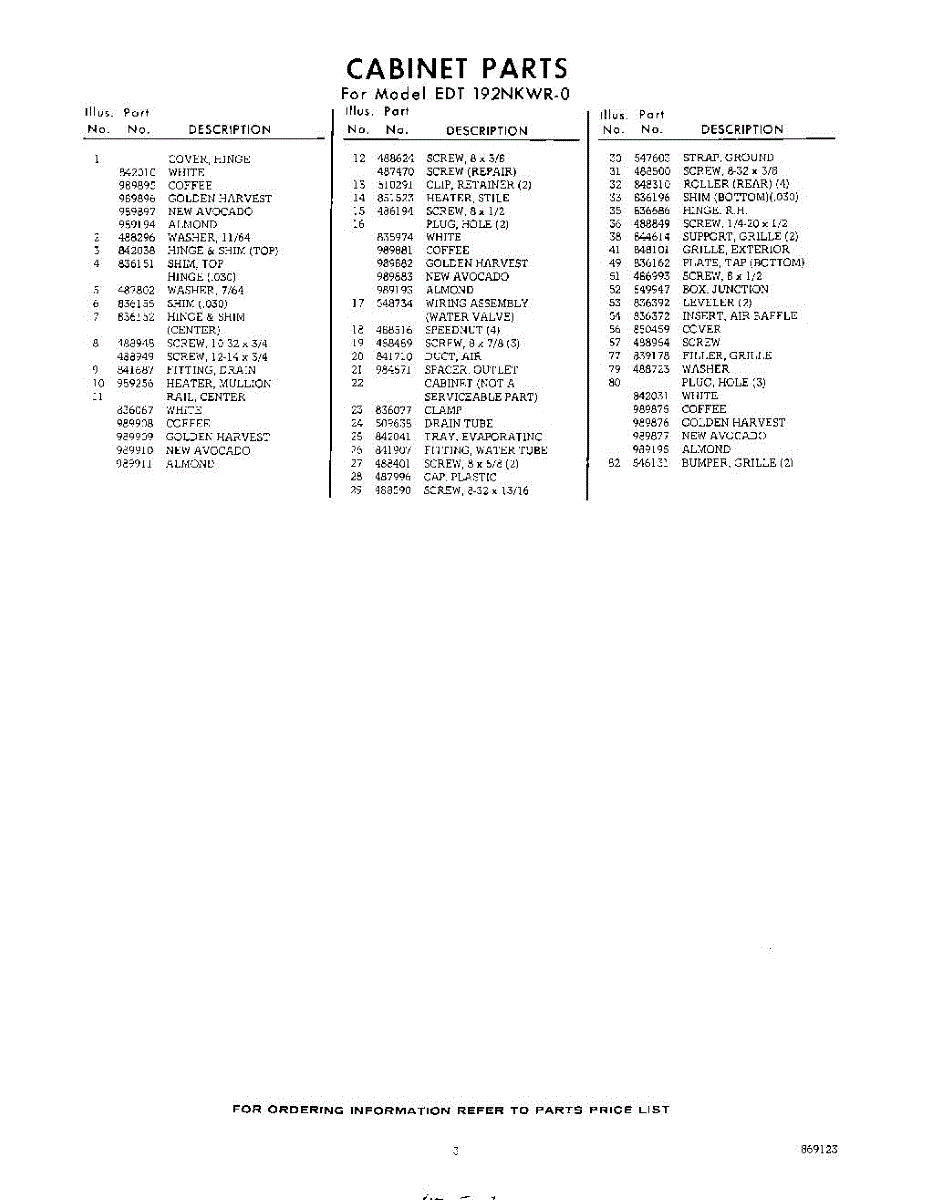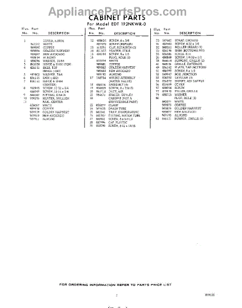 Parts for EDT192NKWR0