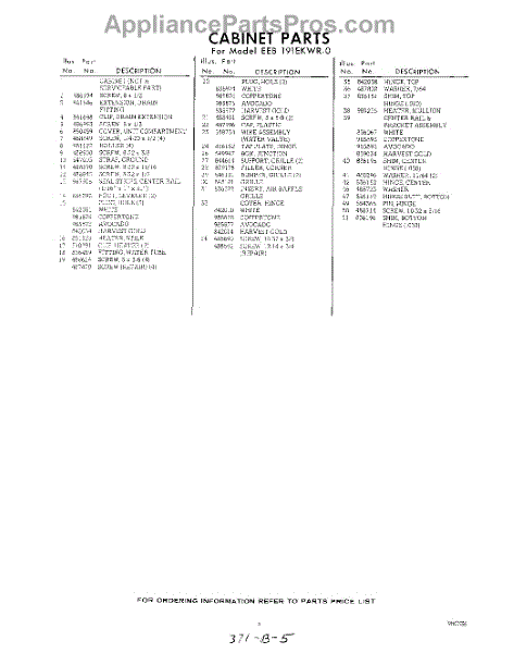 Parts for Whirlpool EEB191EKWR0: 05 - Section Parts