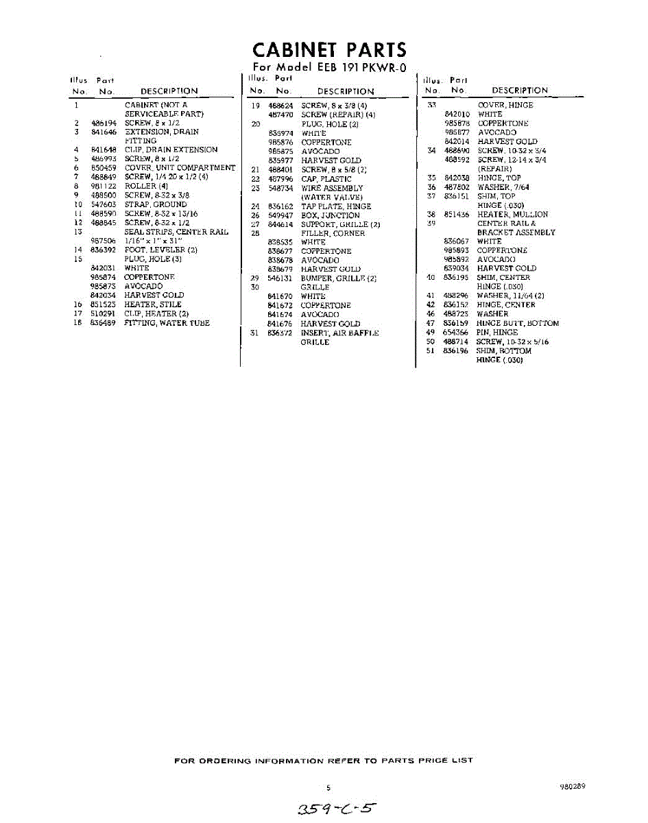 Parts for Whirlpool EEB191PKWR0: 05 - Section Parts