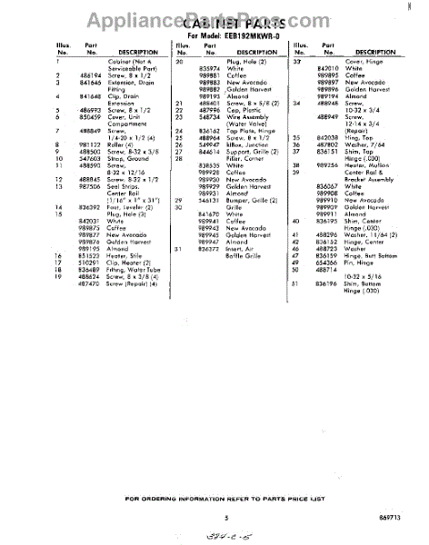 Parts for Whirlpool EEB192MKWR0: 05 - Section Parts