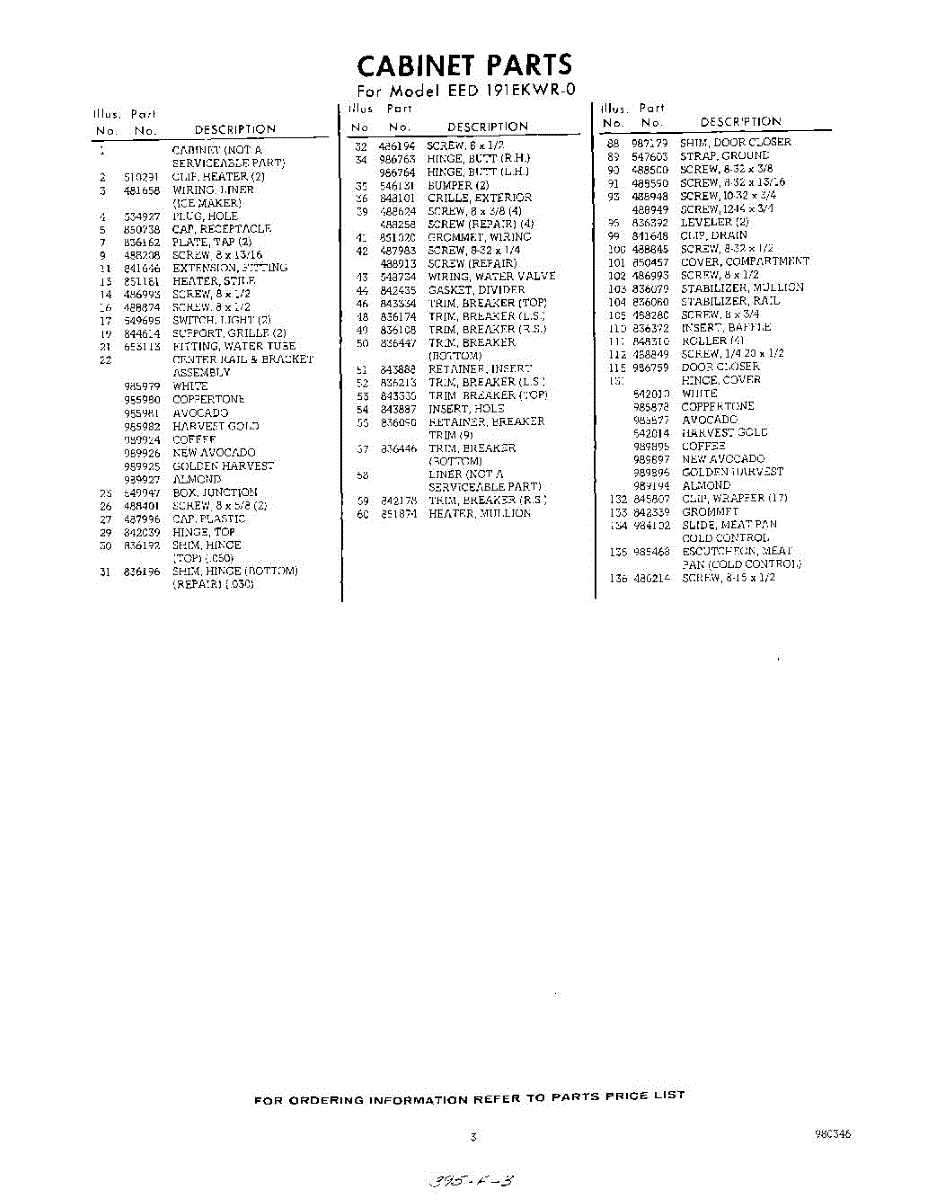 Parts for Whirlpool EED191EKWR0: 03 - Section Parts